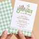 A little sprout is on the way, Celebrate the growing family with this charming Little Sprout baby shower invitation. Featuring fresh green typography, a budding plant illustration, and a classic gingham background, this design brings together modern simplicity and cozy farmhouse style.