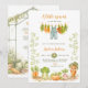 Celebrate your little sprout with this charming watercolor vegetable garden baby shower invitation! Featuring a sweet greenhouse arch, fresh carrots, tomatoes, overalls on a clothesline, potted plants, and farm-fresh details—ideal for garden baby shower, locally grown vegetable garden, or baby in bloom themes. Perfect for gender-neutral, spring, or summer celebrations with a boho, organic, countryside vibe.