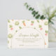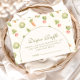 Celebrate a sweet new beginning with this charming little sprout themed design, featuring delicate garden illustrations, soft greenery, and a warm neutral palette. The gentle botanical details and whimsical vegetables create a cozy, storybook-inspired feel that’s perfect for a nature-loving mama-to-be. Designed with a clean arched layout and elegant typography, this piece blends rustic charm with a refined aesthetic. Ideal for spring gatherings, garden parties, or anyone who loves a soft, organic look.