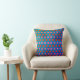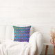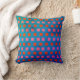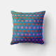 Refresh your room! Throw pillow has a geomtric square pattern in pink and orange against a textured blue background. Click 'Customise It' to add your monogram or name and create your own unique one of a kind design!