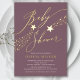 Gold Foil baby shower invitation featuring a modern script set on a plum background.