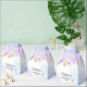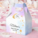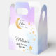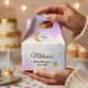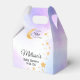 Present your party treats in these magical starry night favor boxes. The design highlights a golden crescent moon paired with a whimsical scattering of glitter stars over a blend of ethereal purple and blue watercolor hues. They make a charming addition to any gender-neutral "A Little Star is Brewing" themed event for expectant parents.