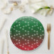 This festive design features white stars scattered across a gradient background that transitions from green at the top to red at the bottom.