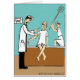 A doctor is about to give a nervous patient a shot. He is advising him that he will feel a little stick from the needle. However, unbeknownst to both of them, there is a nurse who has a big stick and is about to hit the patient with it.