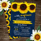 These cute sunflower invitations are perfect for anyone having a baby shower this spring or summer. The design features bright sunflowers on a modern navy blue background with easy to personalise template wording.