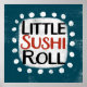 A cute typographic food design that says "Little Sushi Roll". It's black and red text on a white rectangle with funky, playful white dots surrounding it, all on a teal background.