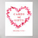 Direct guests to your baby shower gift table in style with this cute "A Little Sweetheart" baby shower cards and gifts sign. The Valentine-themed baby shower welcome poster sign features the phrase "Cards and Gifts" surrounded by a heart-shaped border of red and pink watercolor hearts. Personalise the baby shower cards and gifts sign with a thank you message or custom text. The red and pink heart baby shower cards and gifts sign is perfect for February baby showers! Designed to coordinate with our Little Sweetheart baby shower collection.
