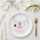 Valentine theme baby shower personalised paper plates "A Little Sweetheart is on the way" featuring digital watercolour clothesline illustration.