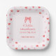 Little Sweetheart Girl Baby Shower Paper Plates with cute watercolor hearts & a bow