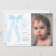 Little Sweetheart Elegant Blue Bow Birthday Photo Invitation