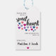 Sweetheart favour tags for baby showers or bridal showers—crisp white tags with watercolor hearts in pink, purple, and blue.