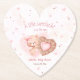 A little sweetheart is on the way! Heart shaped paper coasters featuring an adorable baby bear girl holding a sweet heart shaped cookie, little hearts and clouds. Just perfect for your February girl baby shower around the Valentines day. Easily personalise the text. - Kate Eden Art