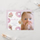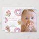 This cute "little sweetheart" girl's 1st/first birthday photo invitation features doughnuts, cupcakes, and an ice cream in pastel pink shades. The reverse side features a light pink background with sprinkles. Personalise it for your needs. You can find matching products at my store.