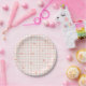 Add a finishing touch to your baby shower or event with this pink gingham Valentine's themed plate.
