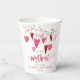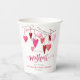 This cute baby shower paper cup features a branch with hanging hearts in shades of pink. Personalise this Valentine's day baby shower paper cup with your shower details.