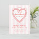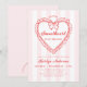 This Little Sweetheart baby shower invitation features a charming heart illustration with soft pink stripes and romantic red details. Inspired by Valentine’s Day, this modern yet sweet design is perfect for a girl baby shower filled with love.