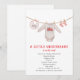 Valentine's day baby shower theme featuring vintage inspired illustration of a valentine's baby bodysuit with truck illustration, xoxo bib, and baby socks hanging from clothesline.