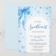This design features a Valentines themed baby shower "A Little Sweetheart Is On The Way" with blue glittery bow ribbon and water coloured pastel blue love hearts. Perfect for a baby boy baby shower theme.