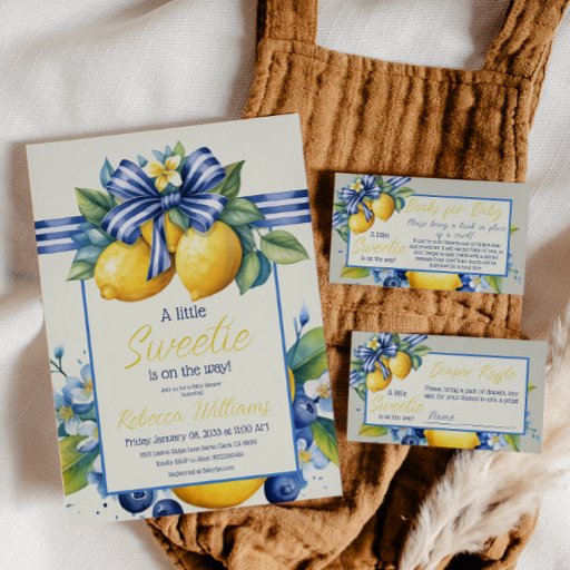 Little Sweetie Blue Bow Tile Lemon Baby ShowerDesigned by Tetiana Domushkina