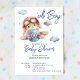 Little tiny pilot aeroplane baby shower invitation template. Cute baby bunny aeroplane pilot in the clouds, oh boy baby shower invitation.