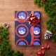 Deep blue,red,and white patterned wrapping paper for Christmas. Bethlehem icon makes a seasonal design. This version is improved and updated to refine the image.