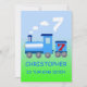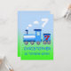 A little train puffing out the number seven. An invitation to a birthday party that you can customise.
