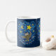 Swirly colours dance in the whimsical night sky with the moon, the stars and an owl. By Paxdomino