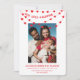 New Parents! Announce the arrival of your little Valentine, in the month of February, with this unique valentine's day themed baby birth announcement photo card. The design features cute red hearts and the letters "Our Little Valentine" hanging over the sample photo. Customize the design by replacing the photo and text. The letters "Our Little Valentine Has Arrived" and red hanging hearts are also featured on the rear side of the card. Please contact the designer for any design customization requests. Other matching and coordinating products are also available in our store.