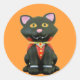 Little Vampire Cat on Orange Classic Round Sticker