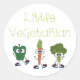 If your child loves veggies or is a vegetarian, you'll love this cute veggie design with text that reads Little Vegetarian and has a green pepper, carrot, and broccoli with eyes and smiles!