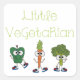 If your child loves veggies or is a vegetarian, you'll love this cute veggie design with text that reads Little Vegetarian and has a green pepper, carrot, and broccoli with eyes and smiles!