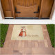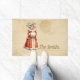 This Victorian style design features a little caroler girl in her red coat, announcing the event of Christmas.