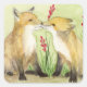 A watercolor painting of two red fox kits in the spring adorns these stickers!