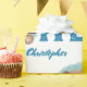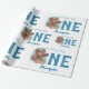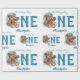 decorate your baby boy first birthday with cute our "little bear is turning" watercolor Teddy bear in brown and blue on a baby wrapping paper for celebrating your baby first birthday turning it to a memorable event.