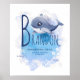 Little Whale Blue Ocean Baby Name and Birth Stats Poster