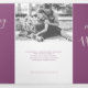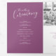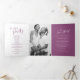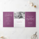 Simple script text and little white heart wedding program with your own two photos, love story, the order of ceremony, wedding party and thank you sections. Personalise this mulberry dark purple pink plum coloured wedding trifold program with your own wedding ceremony names and details. Other colours and matching wedding items available. © Design by Sarah Trett for www.mylittleedenweddings.com on Zazzle.