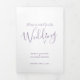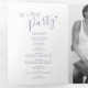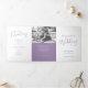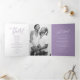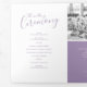 Simple script text and little white heart wedding program with your own two photos, love story, the order of ceremony, wedding party and thank you sections. Personalise this purple and white mono wedding trifold program with your own wedding ceremony names and details. Other colours and matching wedding items available. © Design by Sarah Trett for www.mylittleedenweddings.com on Zazzle.