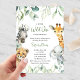 Cute a Little Wild One is On the Way baby shower invitation features pretty greenery with cute watercolor safari animals. Personalise with your details.
