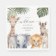 Celebrate the upcoming arrival of your little explorer with PixeliaDesigns Wild One Safari Animal Baby Boy Shower Napkins. Adorned with adorable watercolor illustrations of baby safari animals, including giraffes, elephants, lions, and zebras, with tropical leaves at the top of the card, these napkins add a touch of wilderness adventure to any baby shower. Perfectly themed for a 'Wild One' safari adventure, these napkins are designed to complement your baby boy shower with their vibrant colours and charming animal friends. Part of a themed collection, these napkins are an essential addition to create a cohesive and enchanting safari atmosphere for your special occasion.