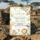 Celebrate the upcoming arrival of your little adventurer with our wild one baby shower invitation! Featuring adorable safari animals surrounded by lush greenery and playful jungle accents, this invitation is perfect for a fun and vibrant baby shower. Customise the details to share your excitement with friends and family, inviting them to join in on a celebration full of love, laughter, and adventure.