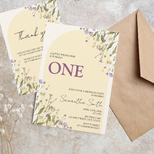 Whether you're planning an intimate family gathering or a larger birthday bash, this invitation is designed to convey the unique charm of your little wildflower. Order your invitations today and let the excitement bloom as you invite friends and family to join in the joyous celebration of your child's first year.