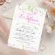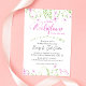This baby girl shower invitation is sprinkled with delicate watercolor flowers in shades of pink and green, perfect for a garden party or sweet spring gathering.