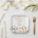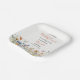 Celebrate your little one with this sweet “Our Little Wildflower” 1st Birthday plate featuring a soft white background and a charming border of delicate wildflowers along the bottom of the card. Gentle butterflies flutter above the blooms in soft shades of orange, blue, and yellow, creating a whimsical garden feel. The word “Wildflower” is written in a beautiful script font in a color that complements the floral palette, while the party details are displayed in a mix of script and serif fonts for a stylish and easy-to-read design. This plate is simple to customize,