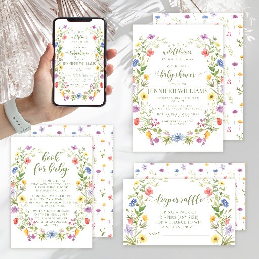 Celebrate the imminent arrival of a little one with this delightful bohemian baby girl shower invitation. The design captures the essence of nature with vibrant meadow colourful flower blooms, perfectly suited for the theme "A little wildflower is on the way". Embrace the beauty of this whimsical and joyful occasion.