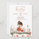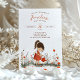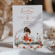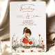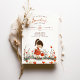 Nurture the joy of growing up with our "Little Wildflower First Birthday Invitation." On the front, a sweet illustration of a little girl in a red polka-dot dress tenderly waters a vibrant garden of wildflowers, symbolising growth and natural beauty. The back is adorned with playful, earth-toned lettering that blends seamlessly with the whimsical garden theme. The gentle watercolor backdrop in soft beige provides a canvas of warmth, inviting your guests to celebrate the first bloom of life's journey with your little one.