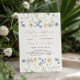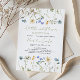Celebrate the arrival of a little wildflower with this charming baby shower invitation. Featuring hand-painted watercolor wildflowers in soft green, yellow, and blue hues, this design exudes a fresh and natural elegance. The delicate floral arrangement frames stylish script typography, making it perfect for a spring or summer baby shower. Personalize with event details and matching stationery for a coordinated look!