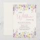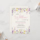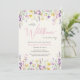 An elegant light cream baby girl shower invitation featuring "a little wildflower is on her way" showcased in a blend of modern light grey typography and a stylish pink script, and whimsical boho-inspired watercolors of dainty purple, pink and yellow wildflowers. Personalize the mother's name and shower details in simple grey and pink lettering.