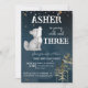 Little wolf themed birthday party template invitation instant download, cute wolf pup dark starry night background, young wild and three wolf party invitations