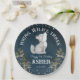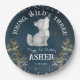 Little wolf themed birthday party monogrammed paper plates, cute wolf pup dark starry night background, young wild and three wolf party personalised table decor printed paper plates