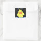A sweet little yellow duck on a black background with blue floating hearts. A ducky way to say thanks.